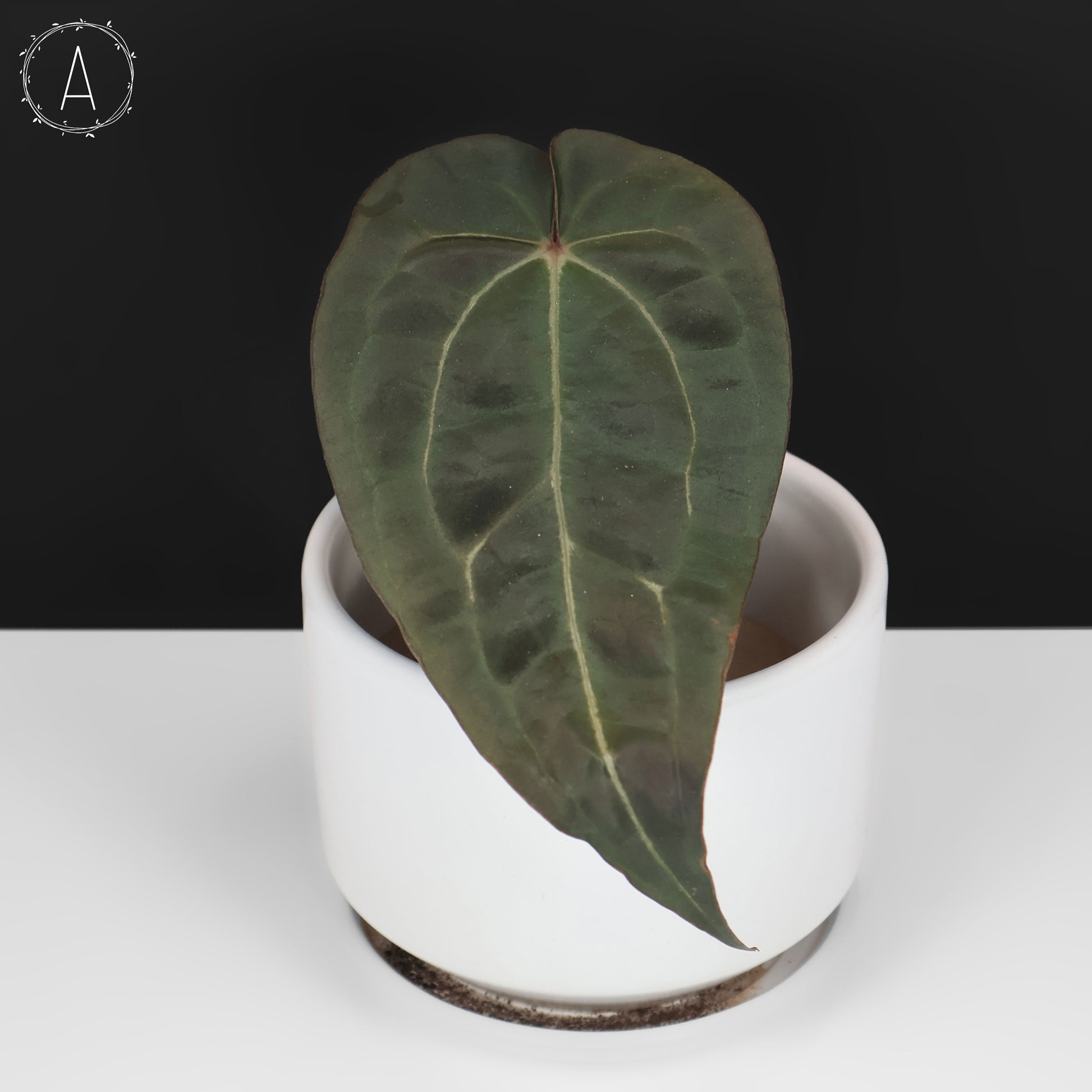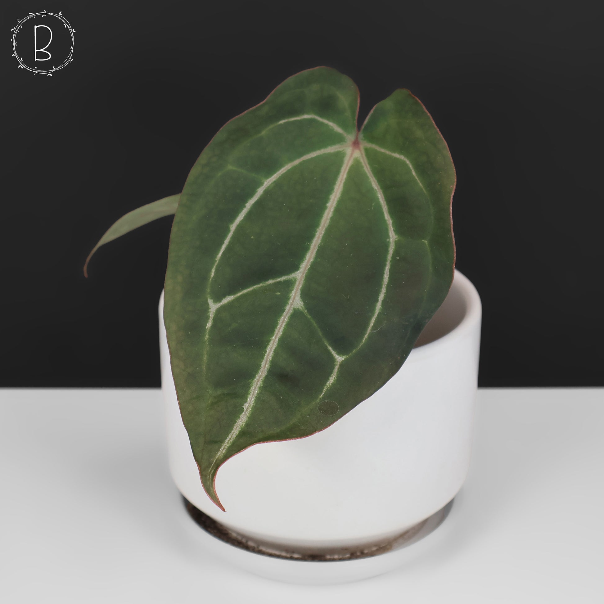 Un hermoso híbrido cultivado a partir de semillas de Cassaundra Marion ( plantaddicted_cass ) de Anthurium Blue Velvet (Barry Schwartz) x (Carlablackiae x Forgetii): este listado es para plantas pequeñas establecidas de dos hojas.