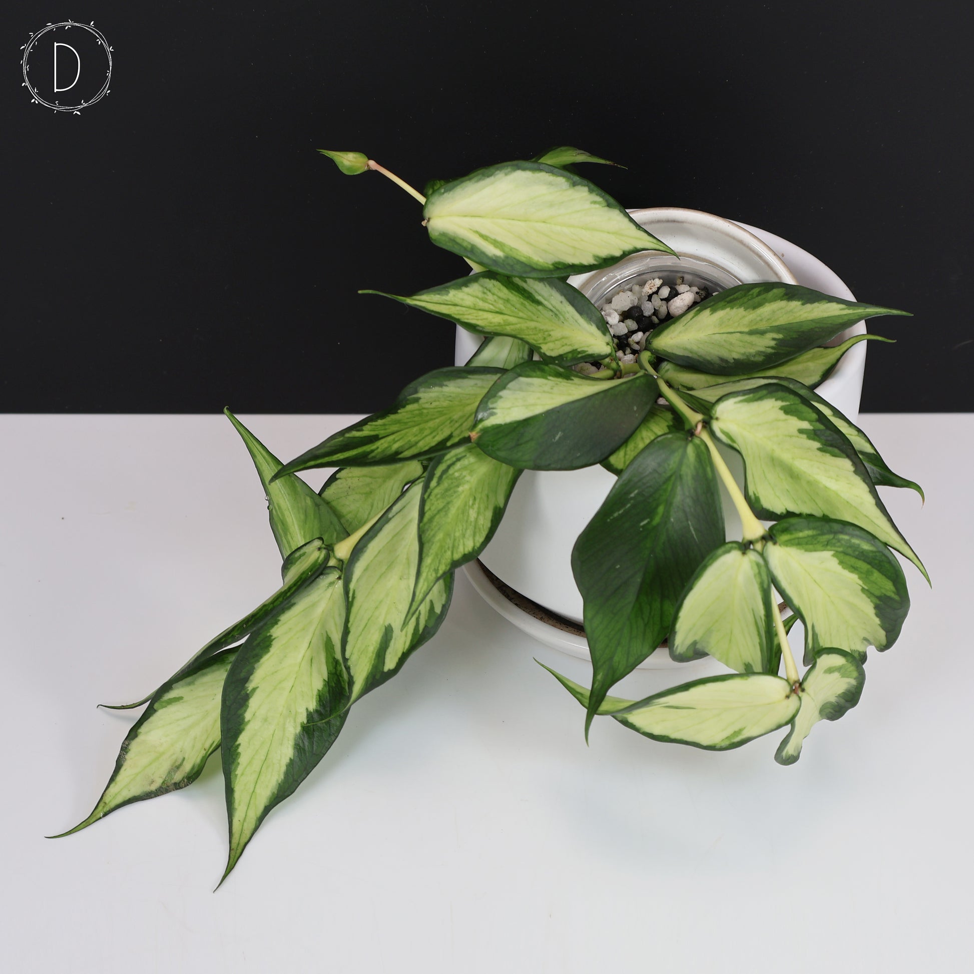 Hoya Polyneura abigarrada interior (comúnmente conocida como Hoya cola de pez abigarrada interior o Hoya cola de sirena).