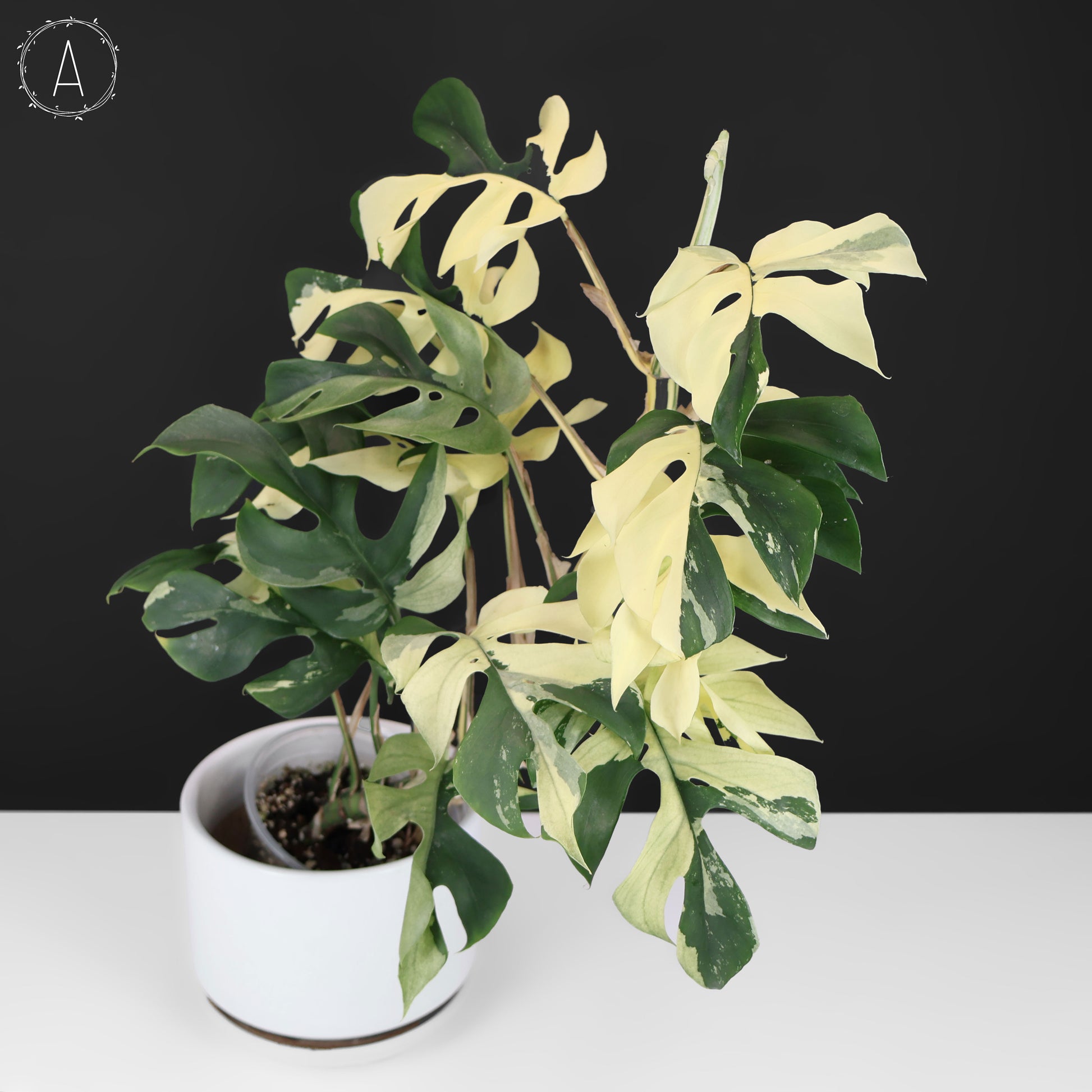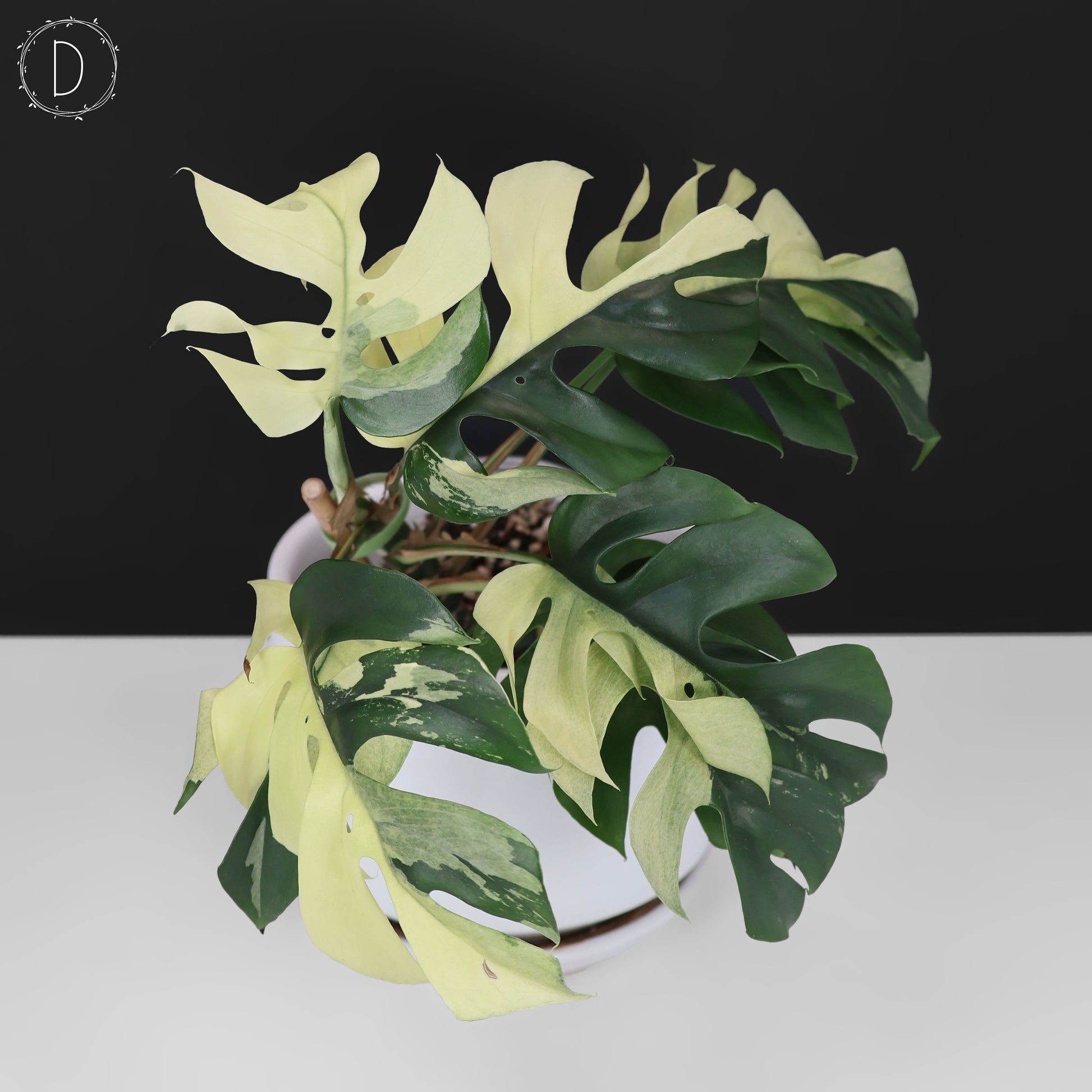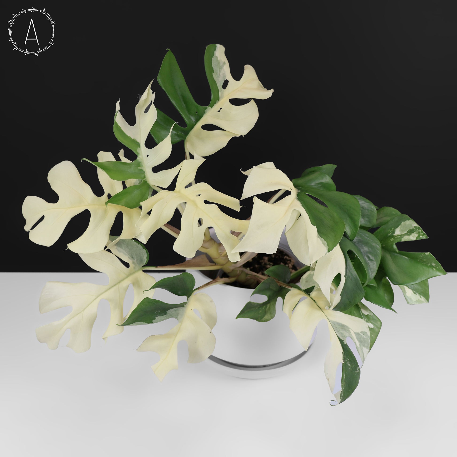 Una hermosa planta trepadora originaria de las selvas tropicales del Sudeste Asiático, concretamente de Tailandia y Malasia. Su variegación puede presentarse en una amplia gama de tonos, desde el amarillo crema hasta el verde menta.