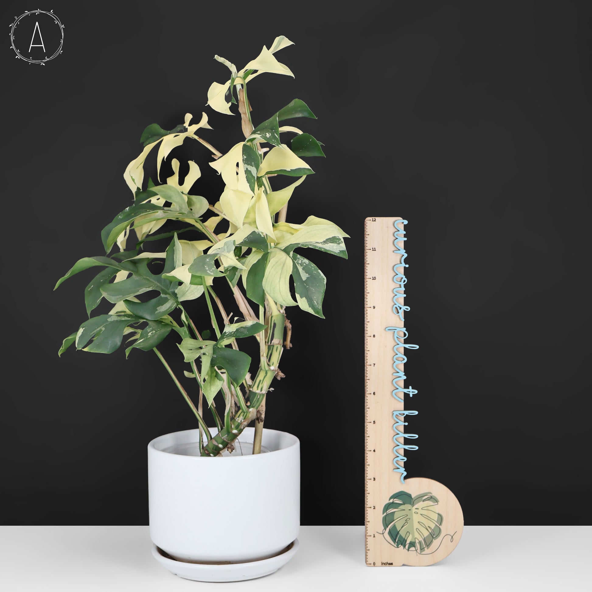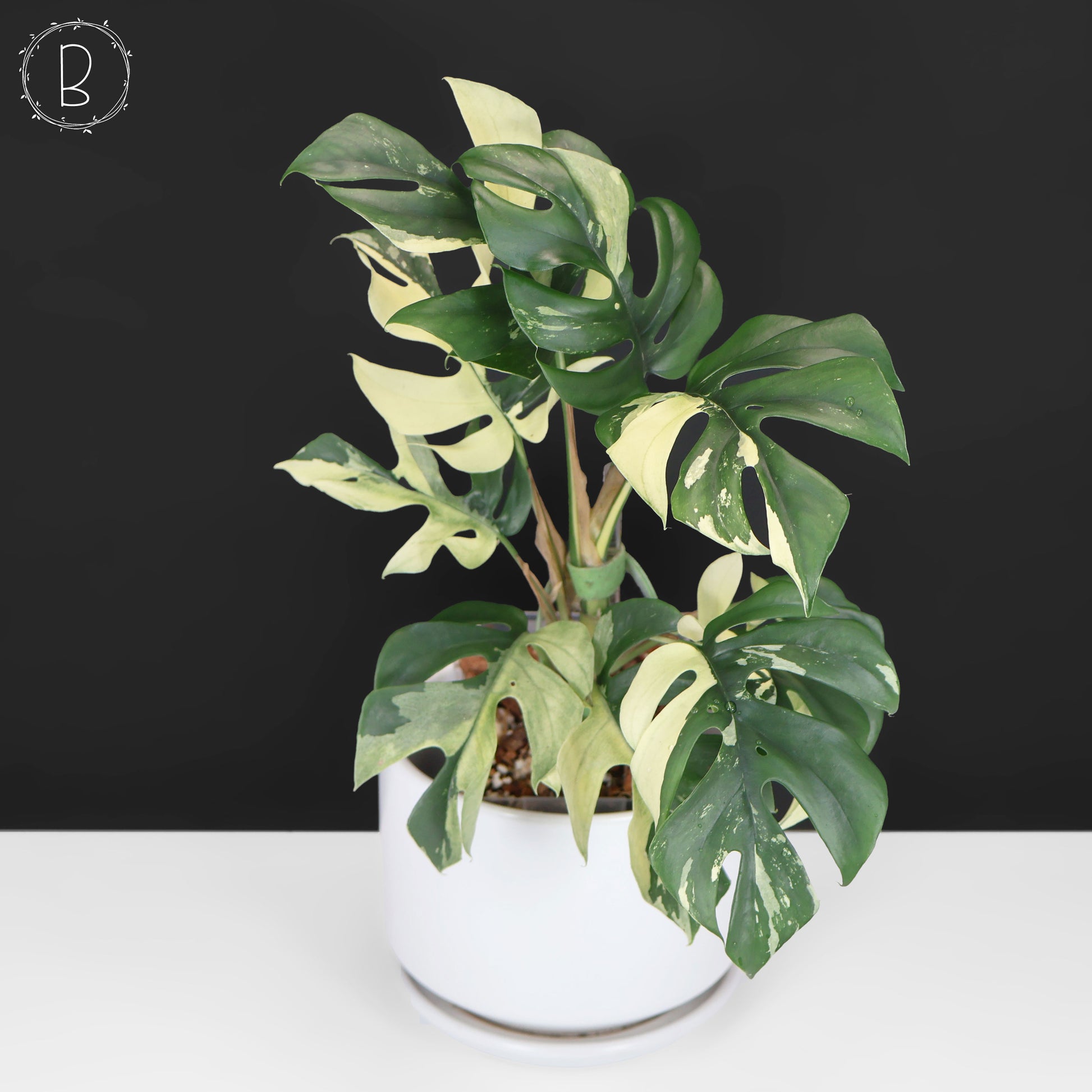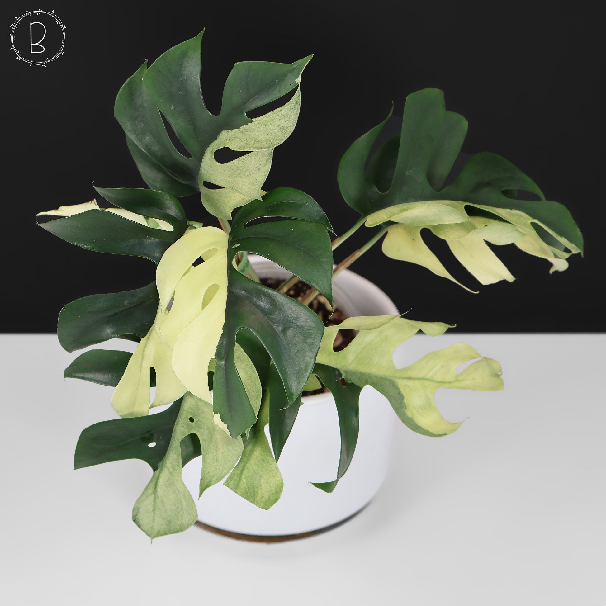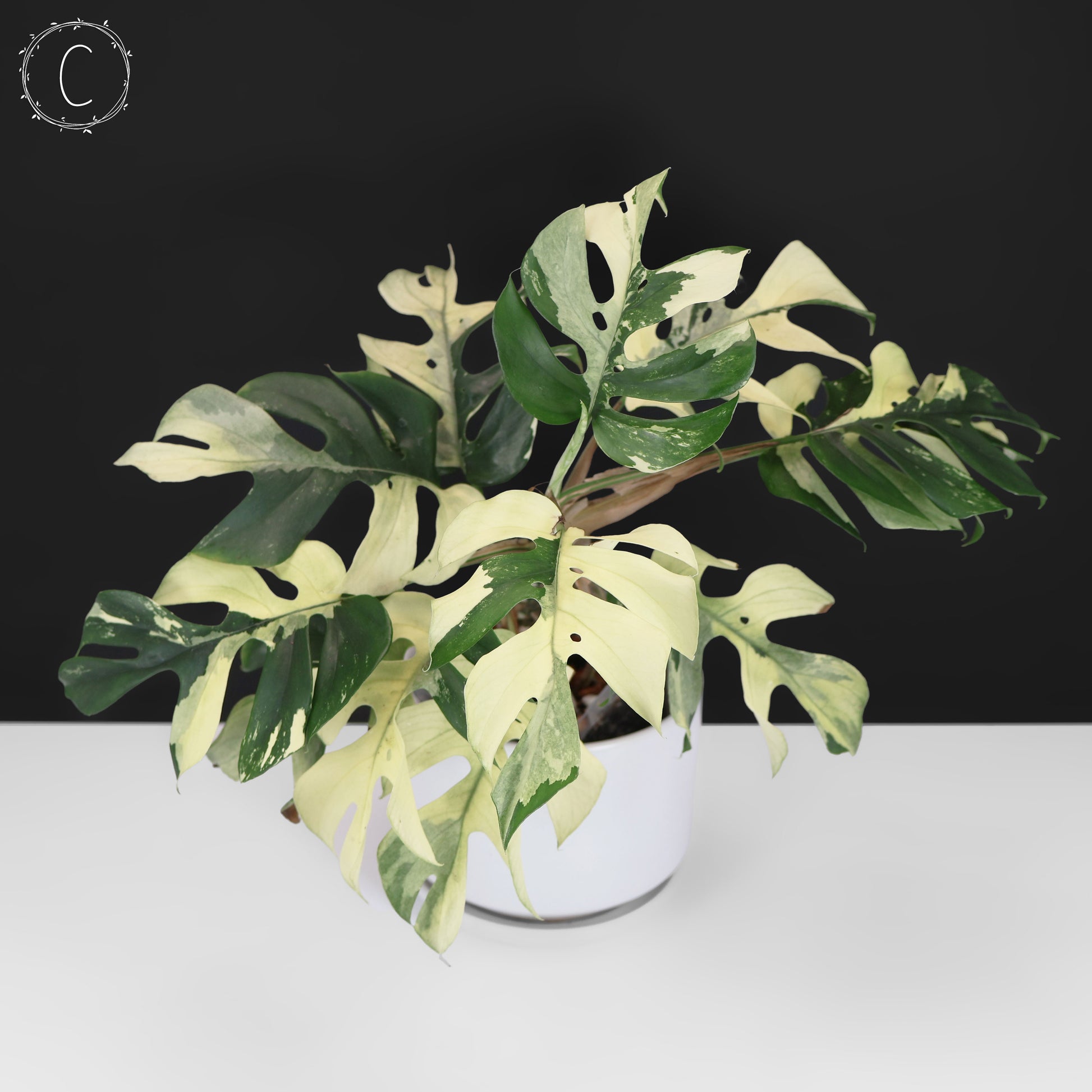 Una hermosa planta trepadora originaria de las selvas tropicales del Sudeste Asiático, concretamente de Tailandia y Malasia. Su variegación puede presentarse en una amplia gama de tonos, desde el amarillo crema hasta el verde menta.