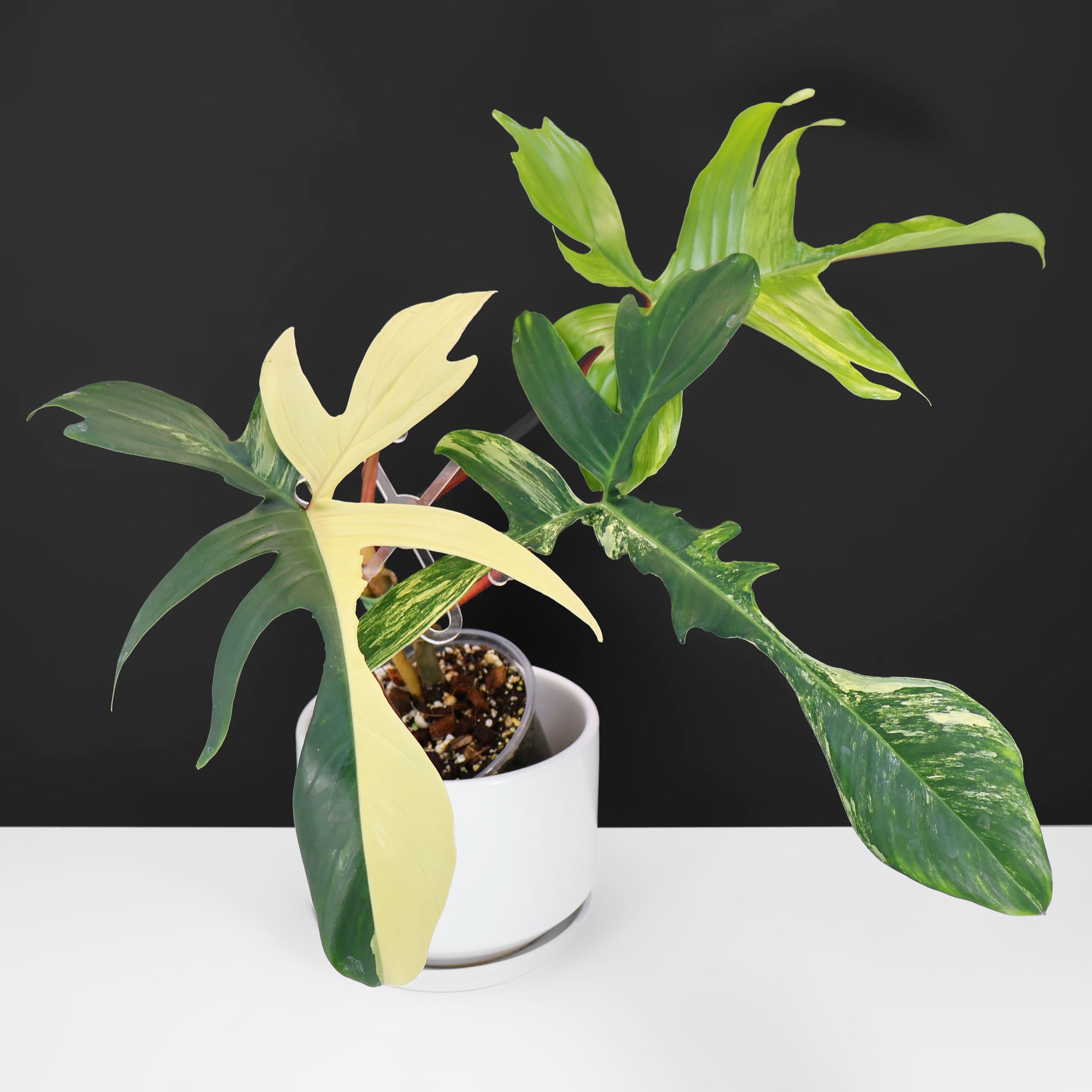 Un hybride de philodendron éclatant, connu pour la forme unique de ses feuilles et sa superbe panachure jaune (ou aurea).