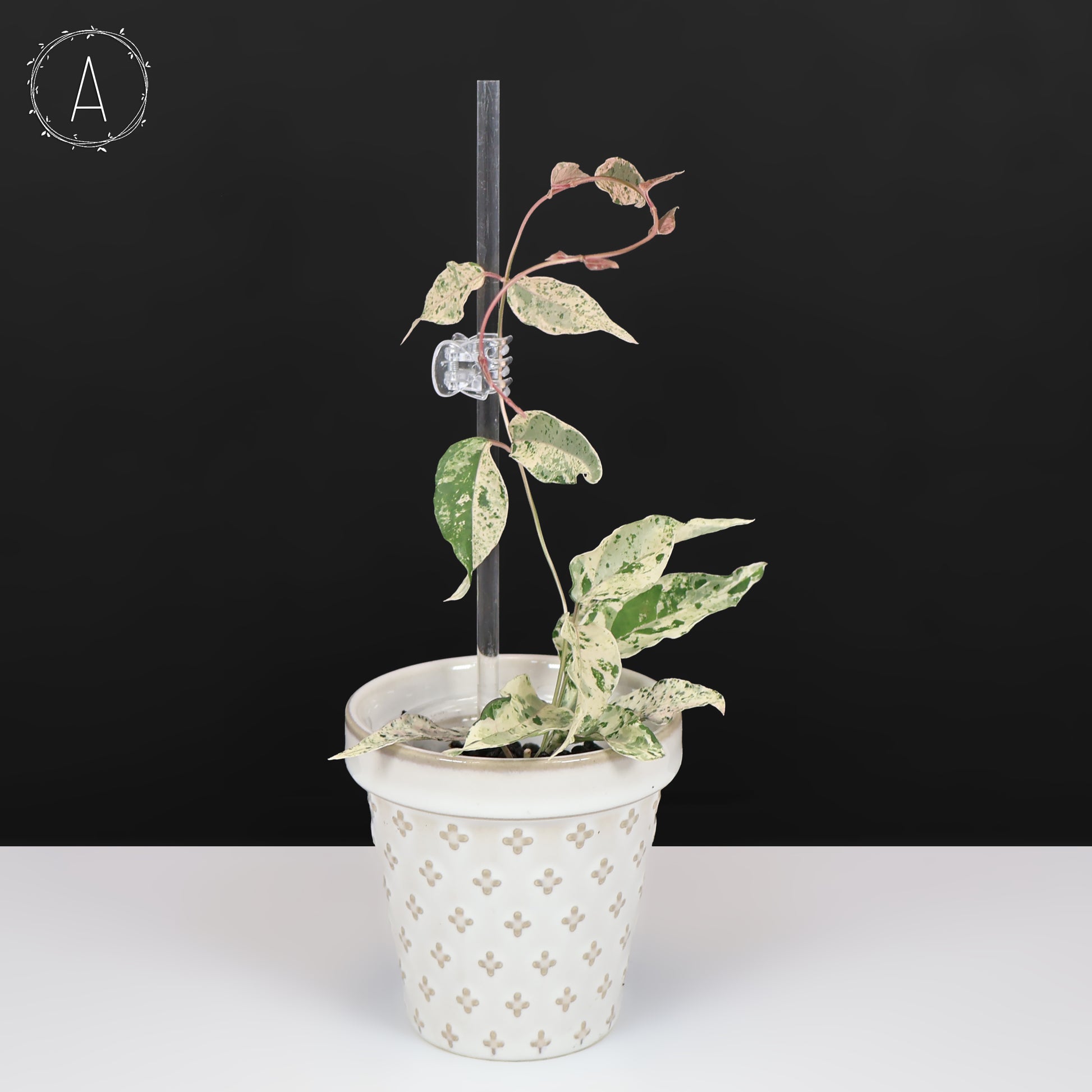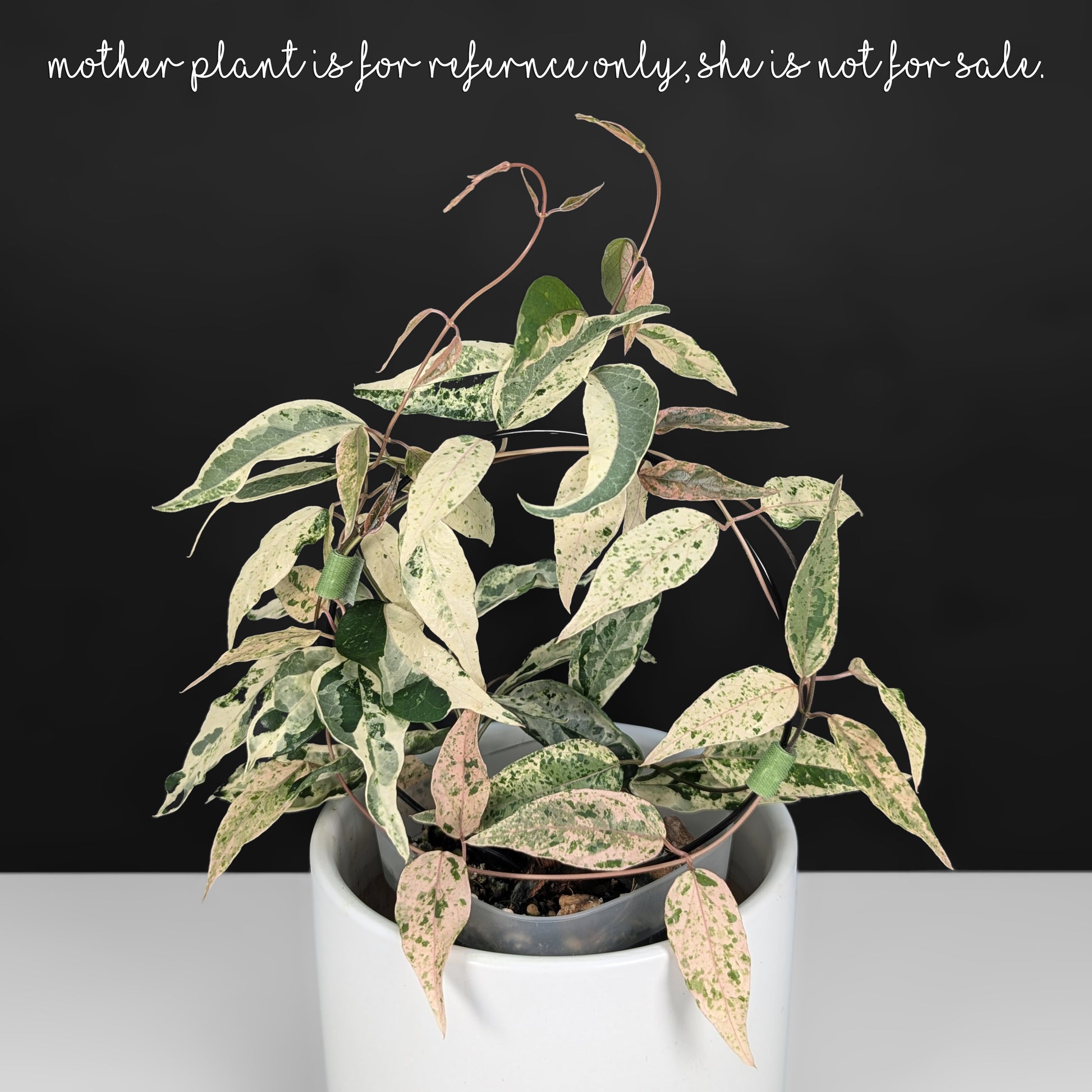 A delicate vining plant native to China. They sun-stress beautifully with shades of light pink to deep magenta purple and produce small white, hoya-like flowers.