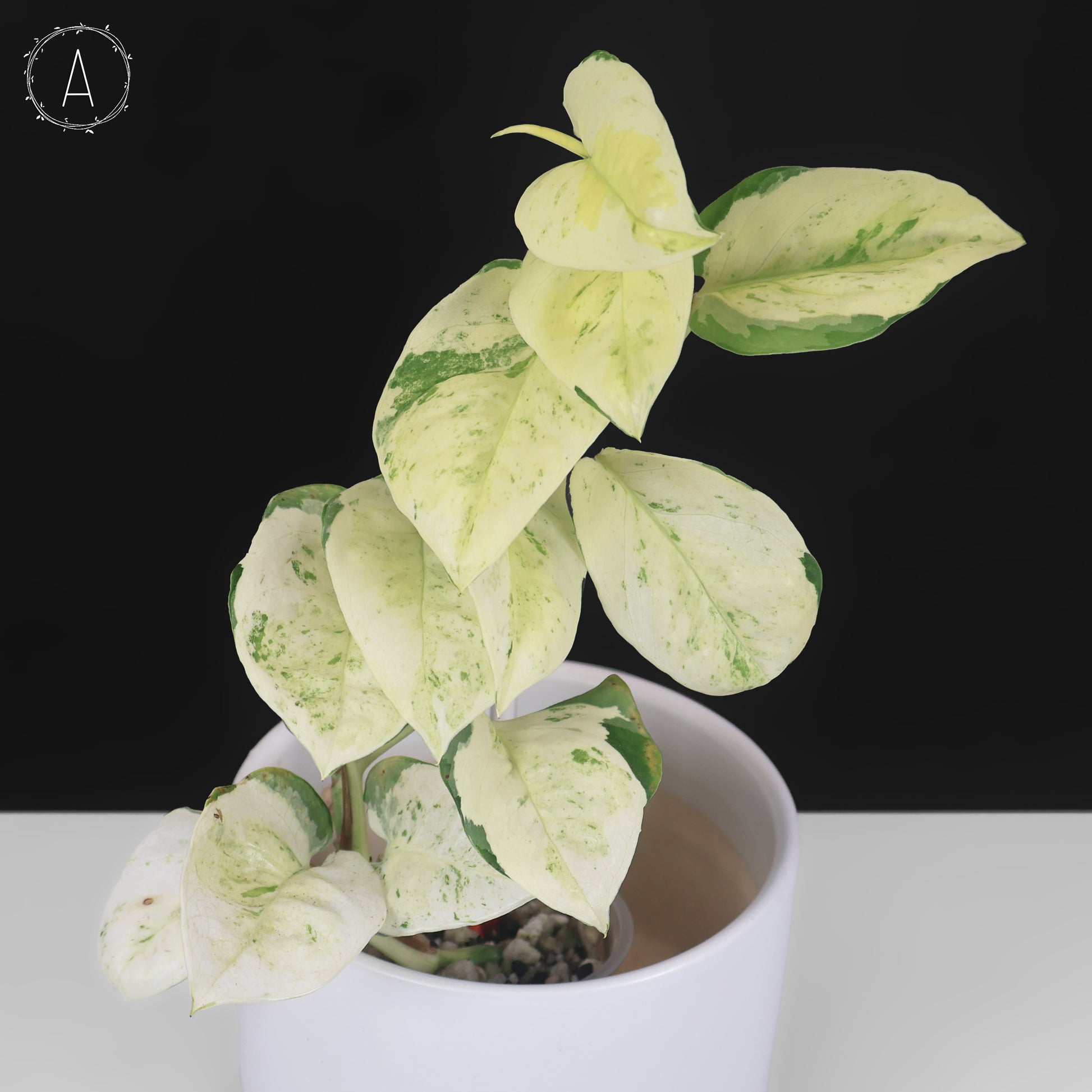 A variegated Epipremnum cultivar known for its striking patterns and beautiful shades of green, yellow, cream and white.