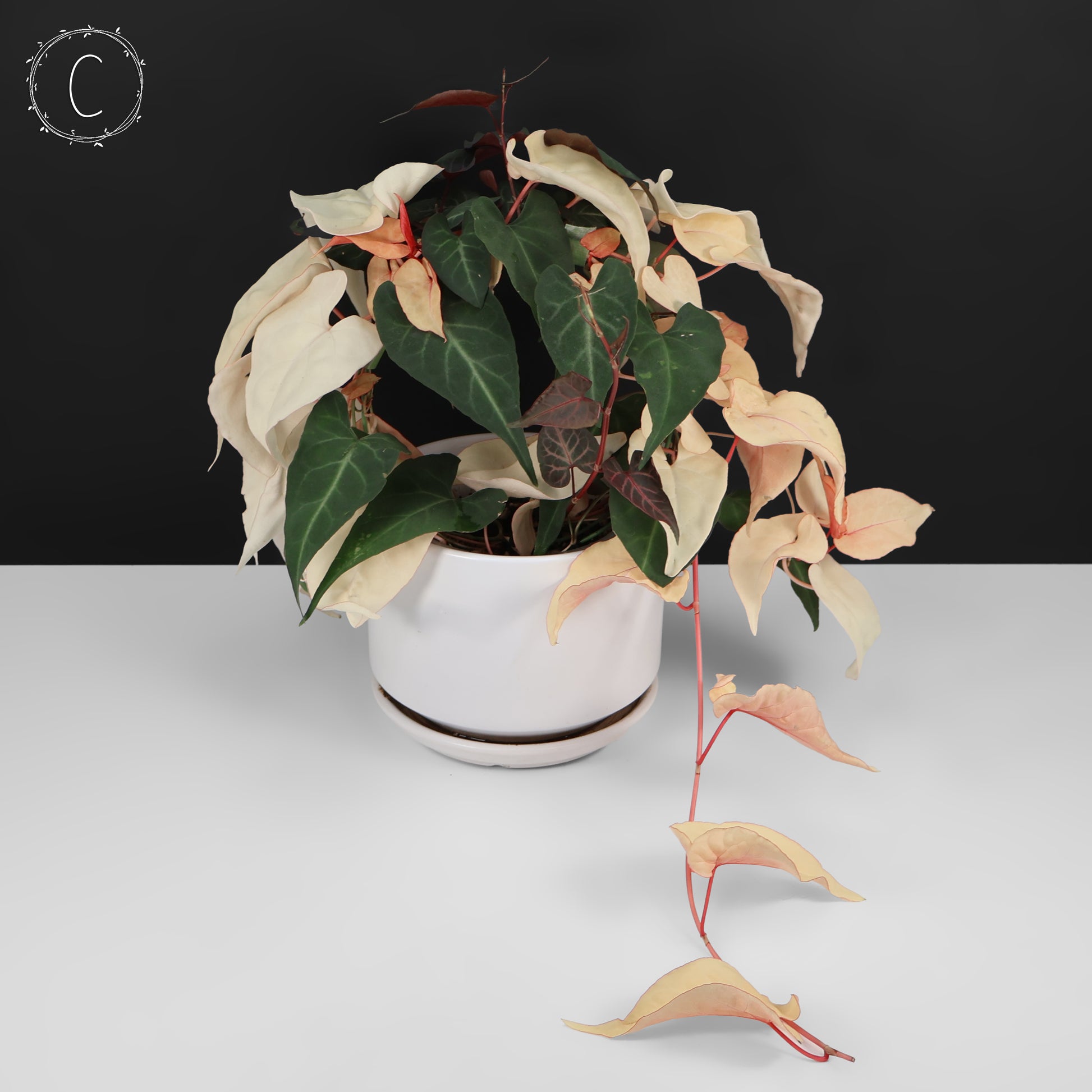 An herbaceous perennial vine native to central and southern China featuring lovely dark green foliage with light pink variegation. Vines can reach lengths of 6 -12 ft. Also known as "Chinese Knotweed."