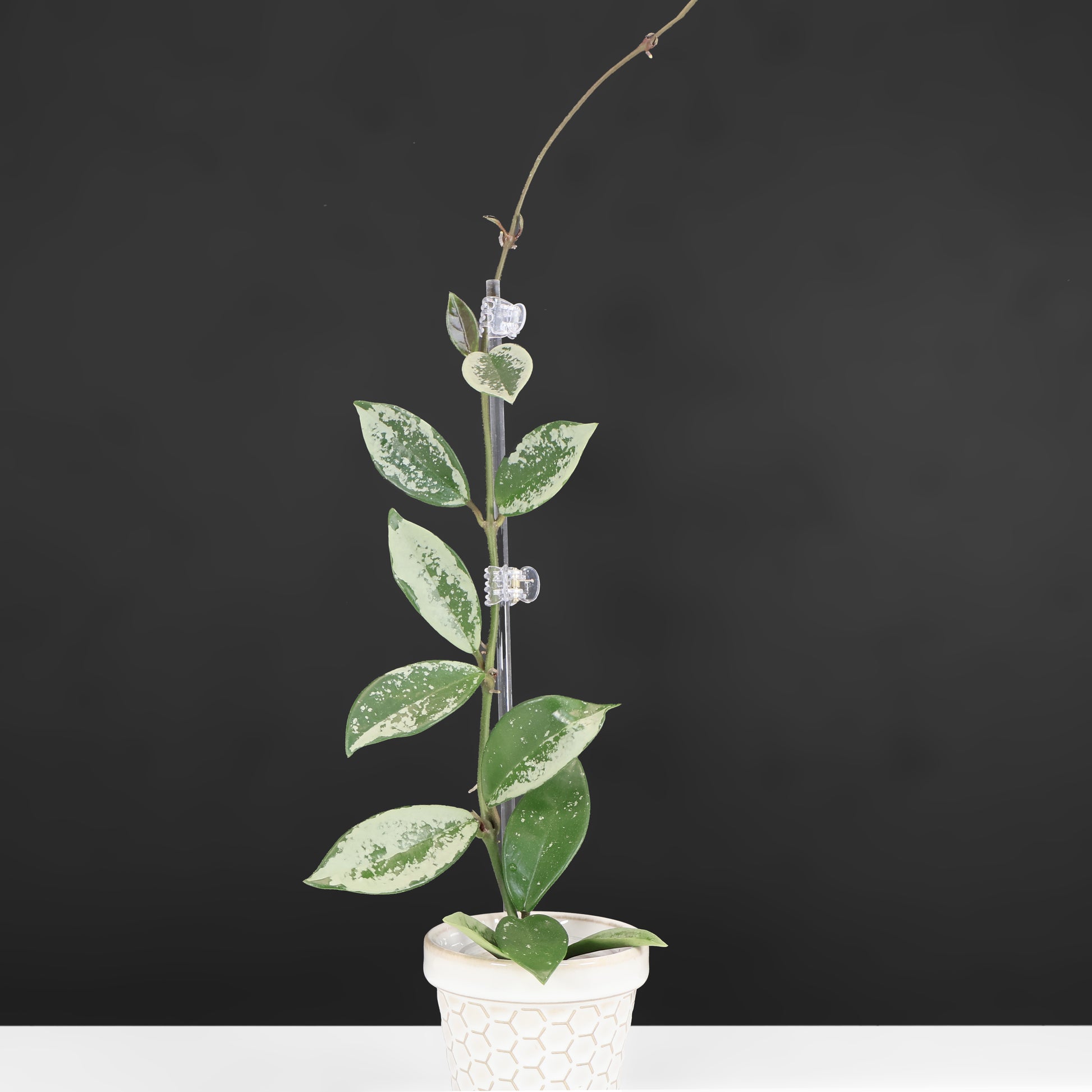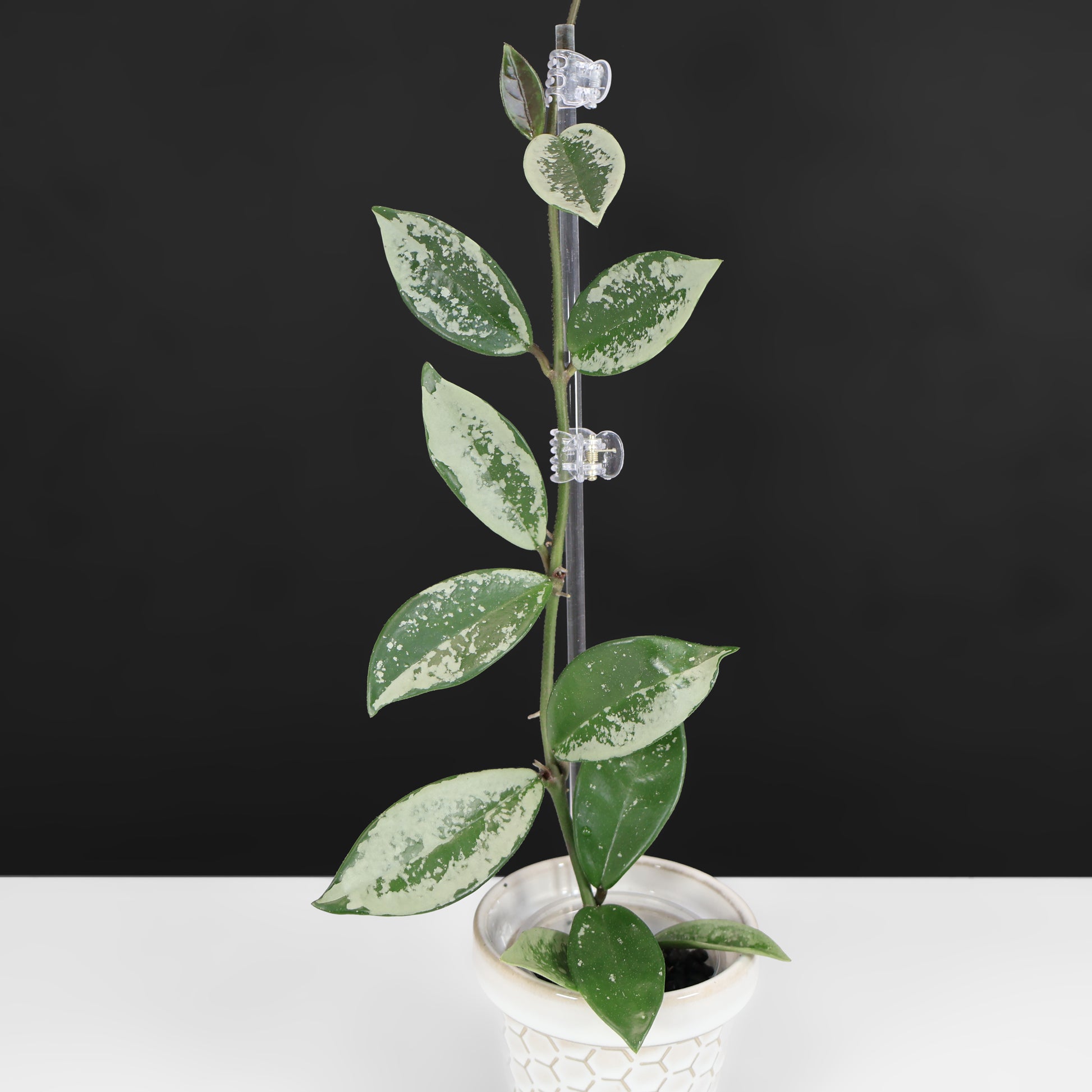 A beautiful Hoya Carnosa variant featuring chunky silver speckling on deep green leaves. A very easy to care for and quick growing Hoya.
