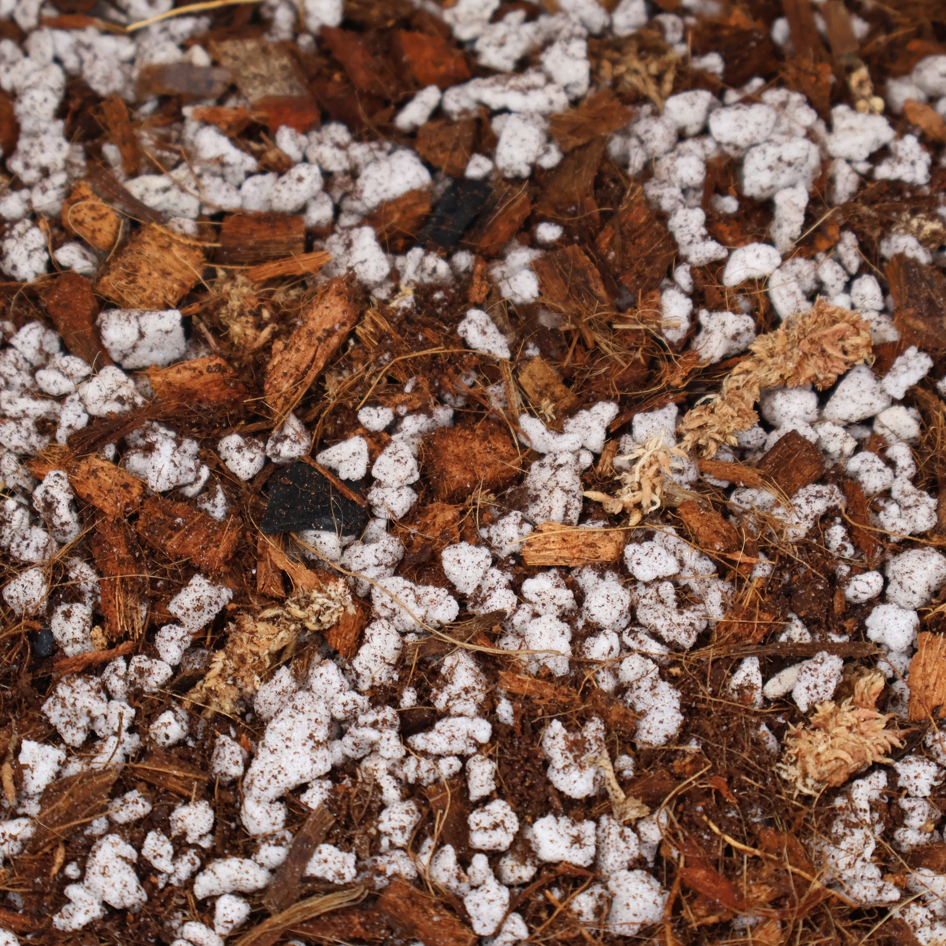 Activated charcoal, coco coir, coco husk, perlite, New Zealand sphagnum moss and worm castings.