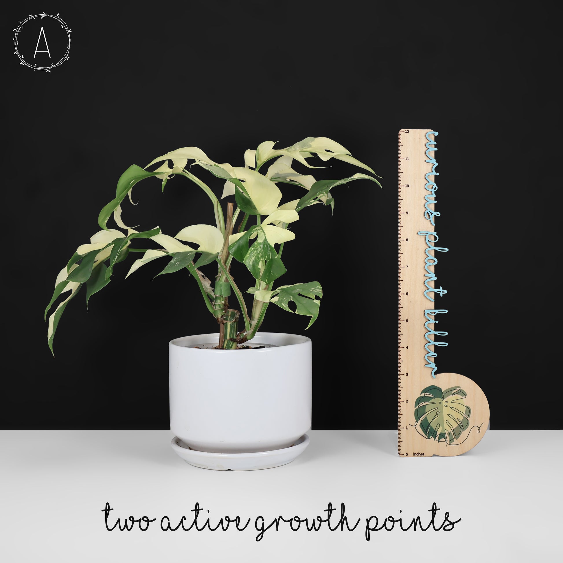 A beautiful climbing plant native to the tropical rainforests of Southeast Asia, specifically in Thailand and Malaysia. Variegation can present in many different shades from creamy yellow to minty green.