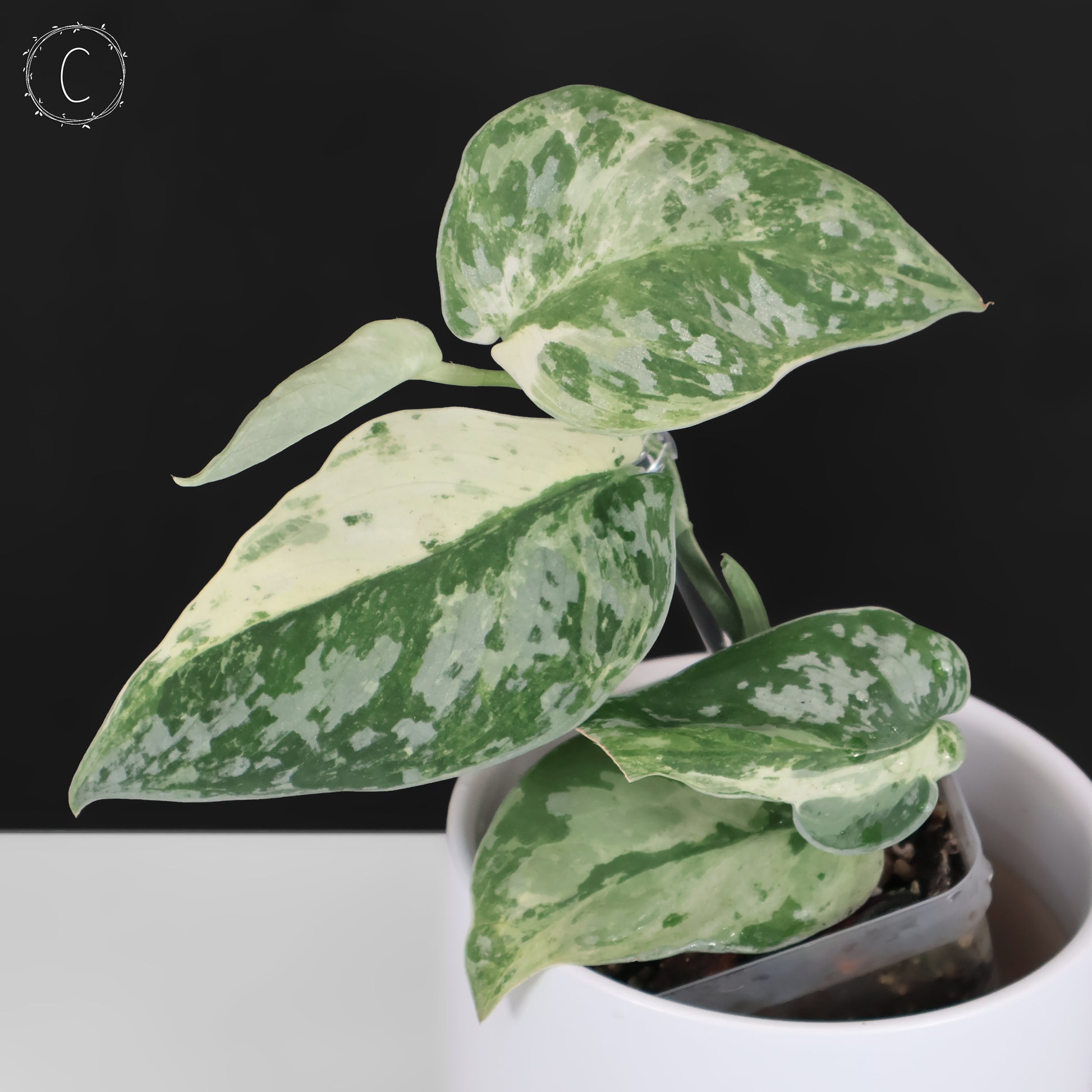 Sometimes also referred to as White Marble Scindapsus Argyraeus or Marble White Crocodile, Scindapsus Argyraeus Albo Variegated or probably about ten other names by the time I finish this listing. Scindapsus, am I right?