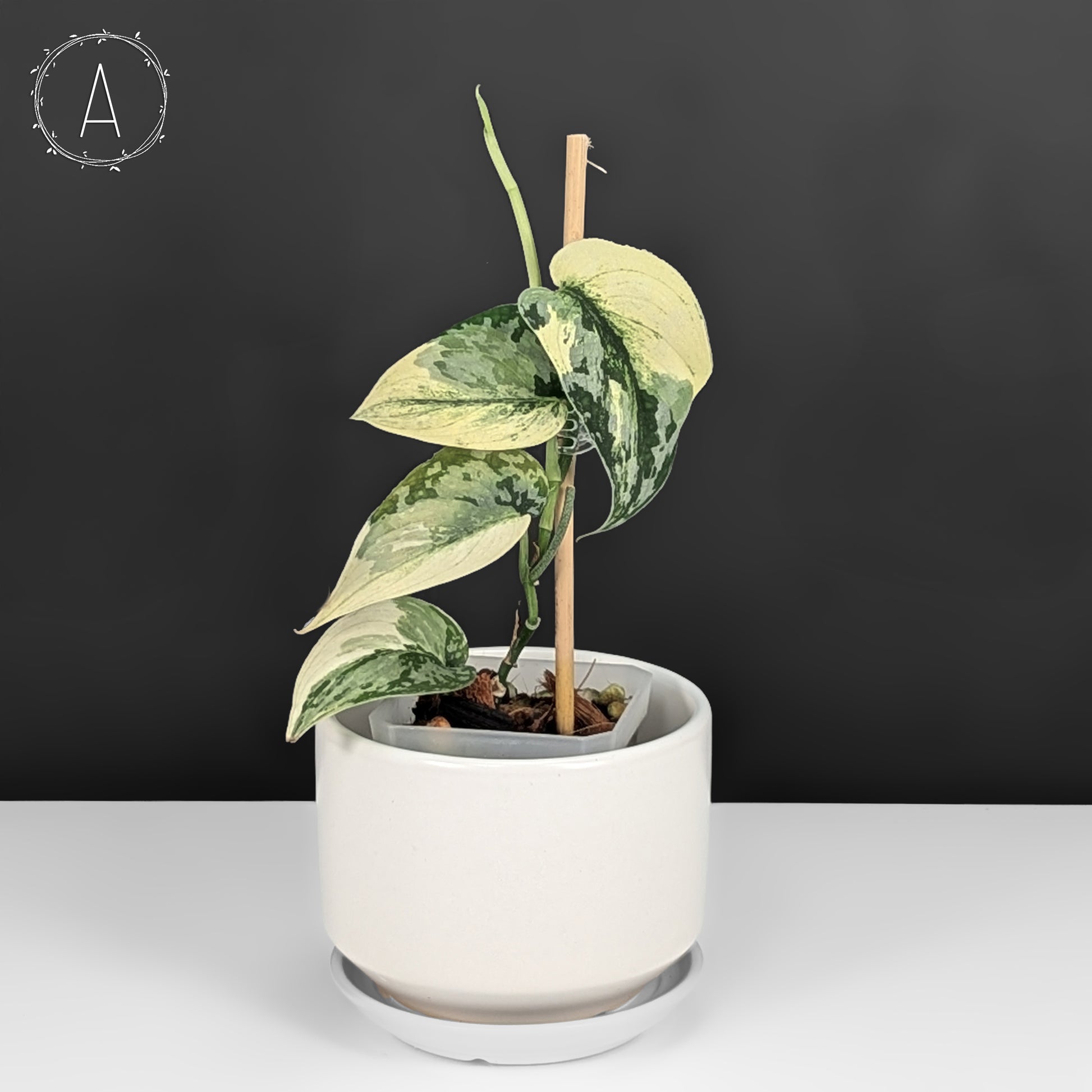 An albo, or white, variegated form of Scindapsus Pictus. For anyone interested, a comparison of the Mayari and Mariposa Scindapsus can be found HERE. (Just scroll to the heading: "Scindapsus Mayari vs. Mariposa.")